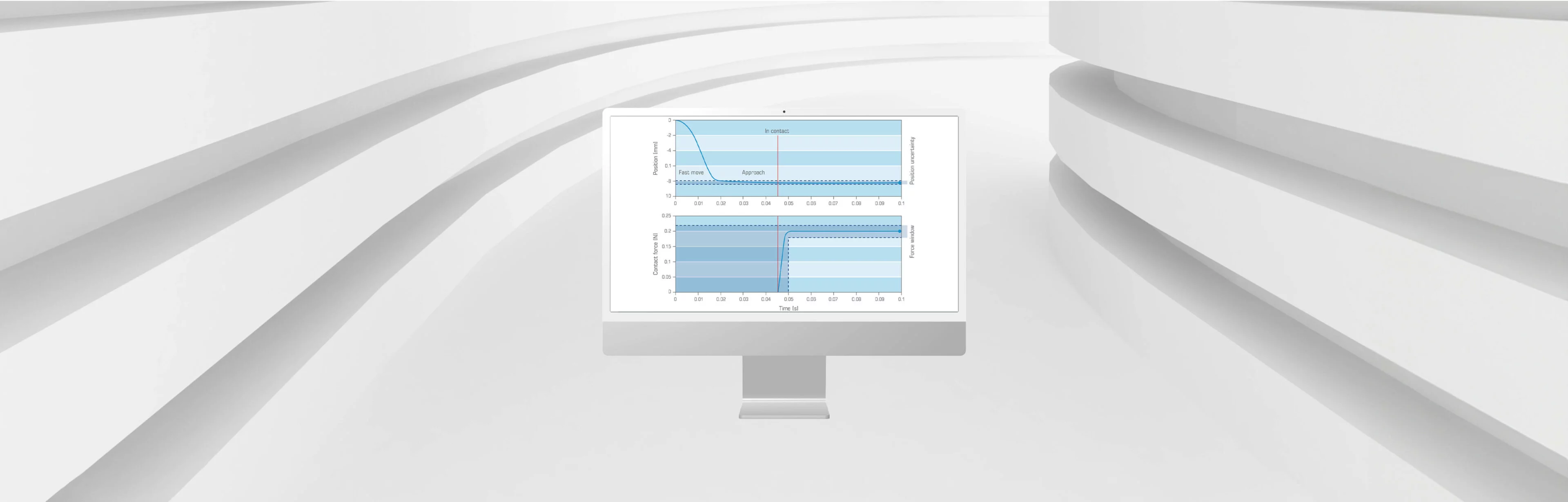 The force control algorithm, integrated into the AccurET controllers, leverages computational power for swift transitions from position to force control, ensuring smooth landings to prevent overshoot while maintaining maximum dynamics.